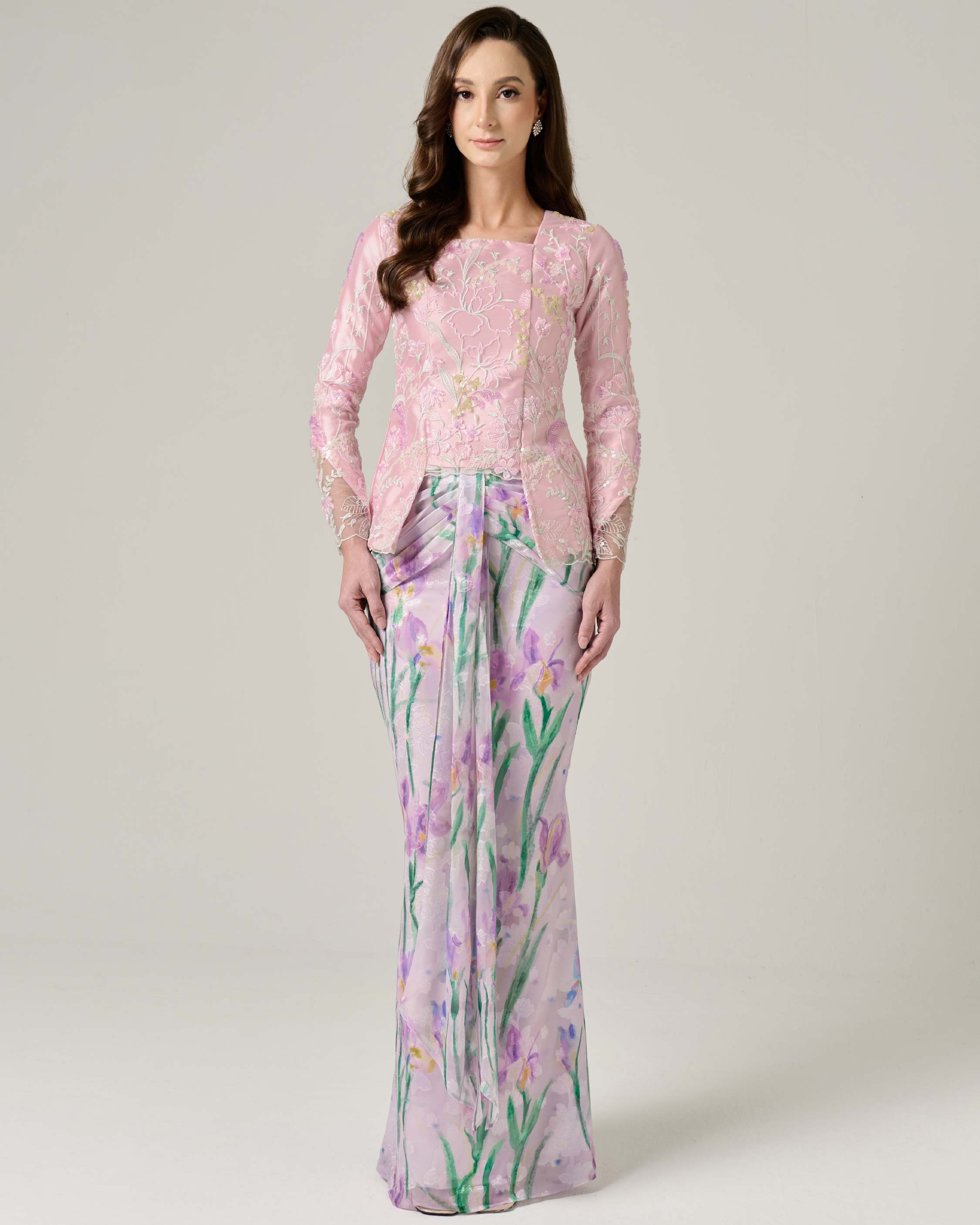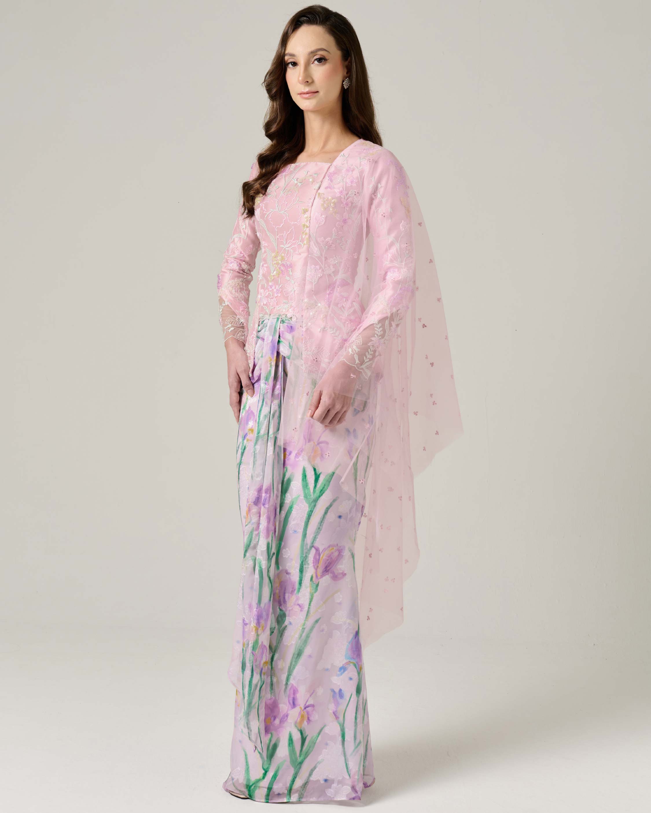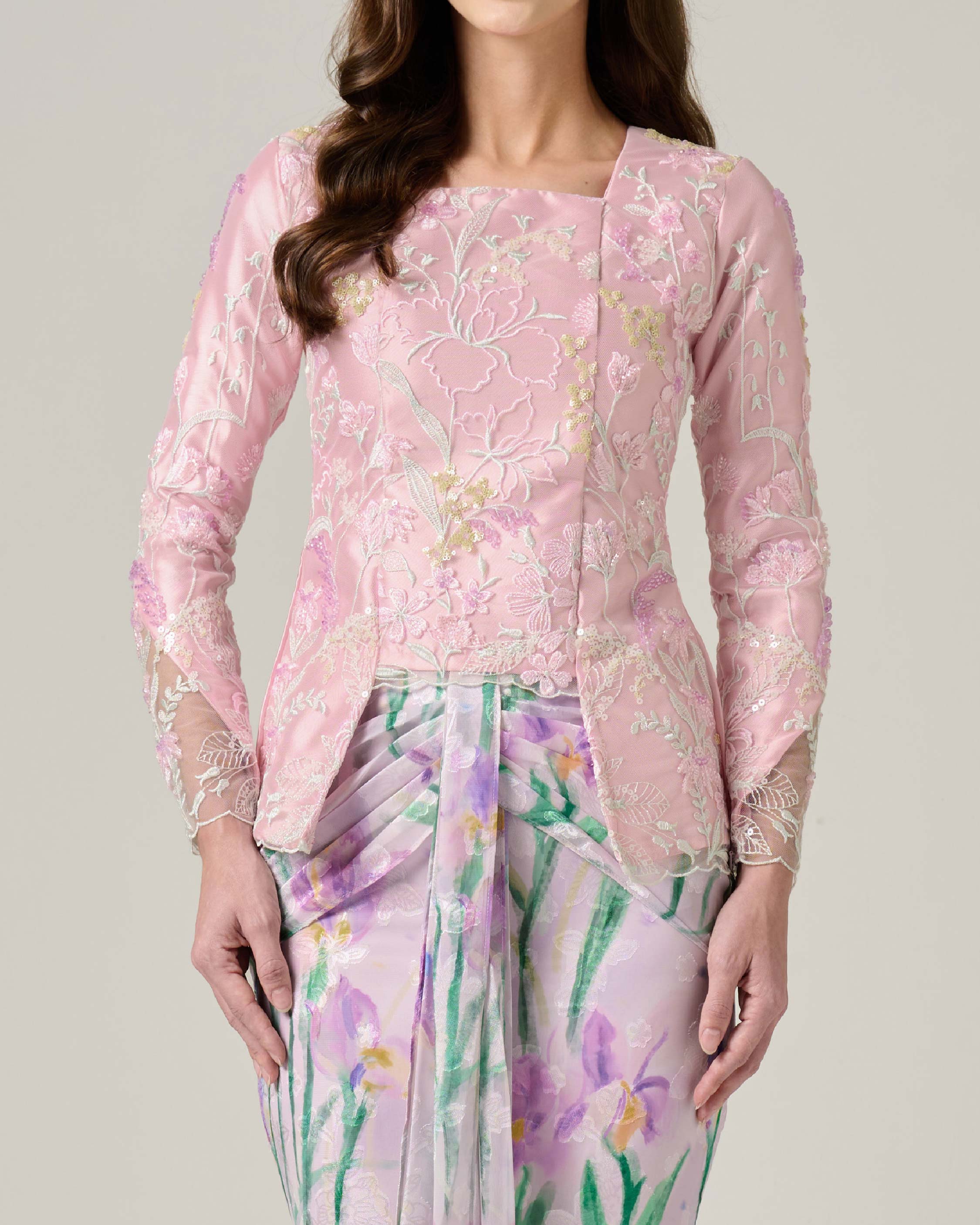 - Fully embroidered floral beaded lace on top