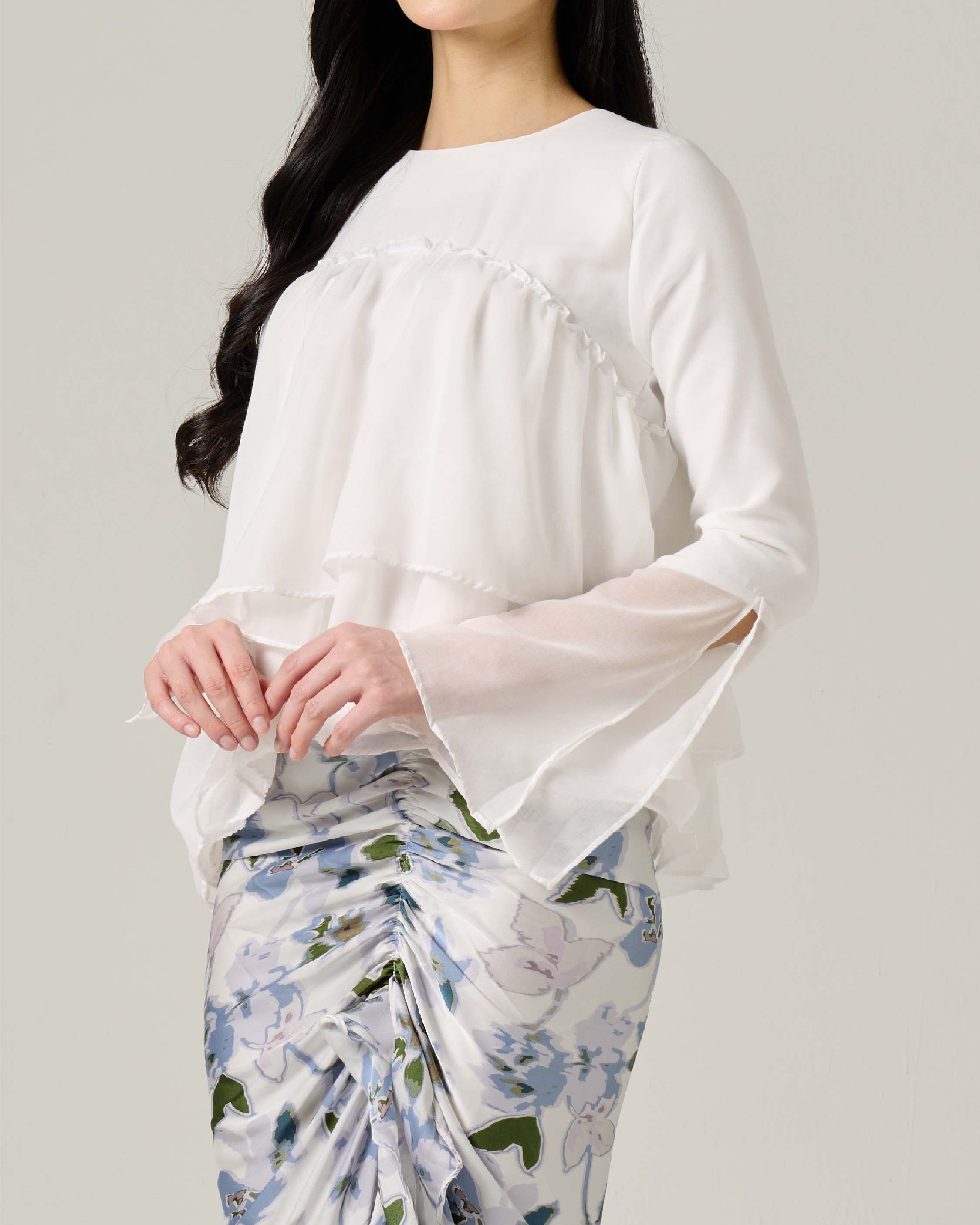 - Fitted long sleeves with flared finishing for elegant sleeve detailing