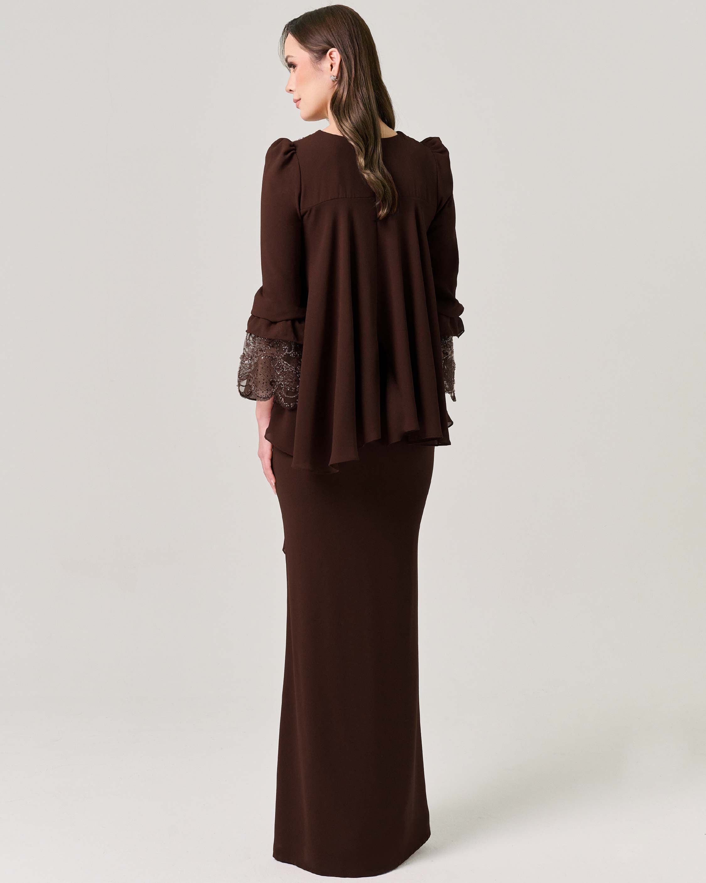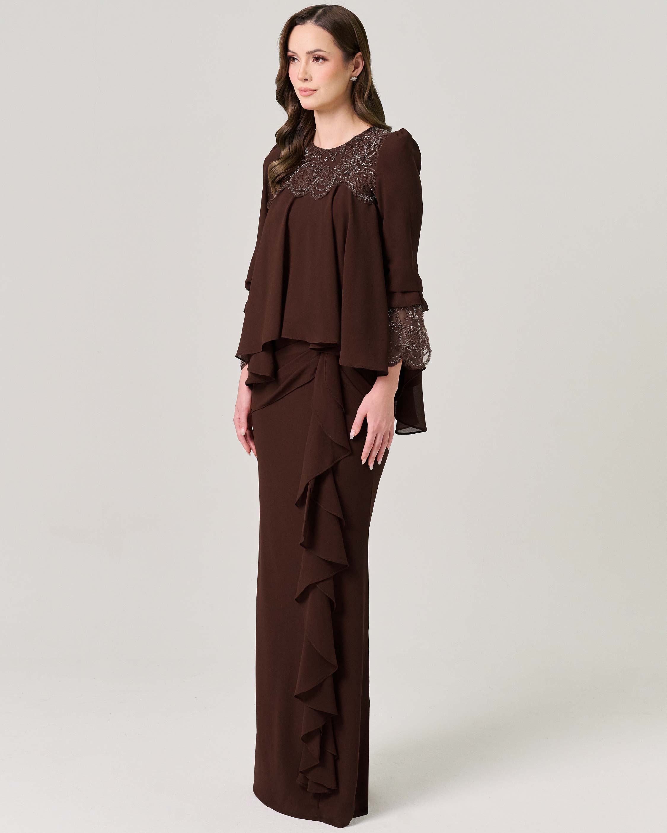- Bell sleeve with flare beaded lace of finishing