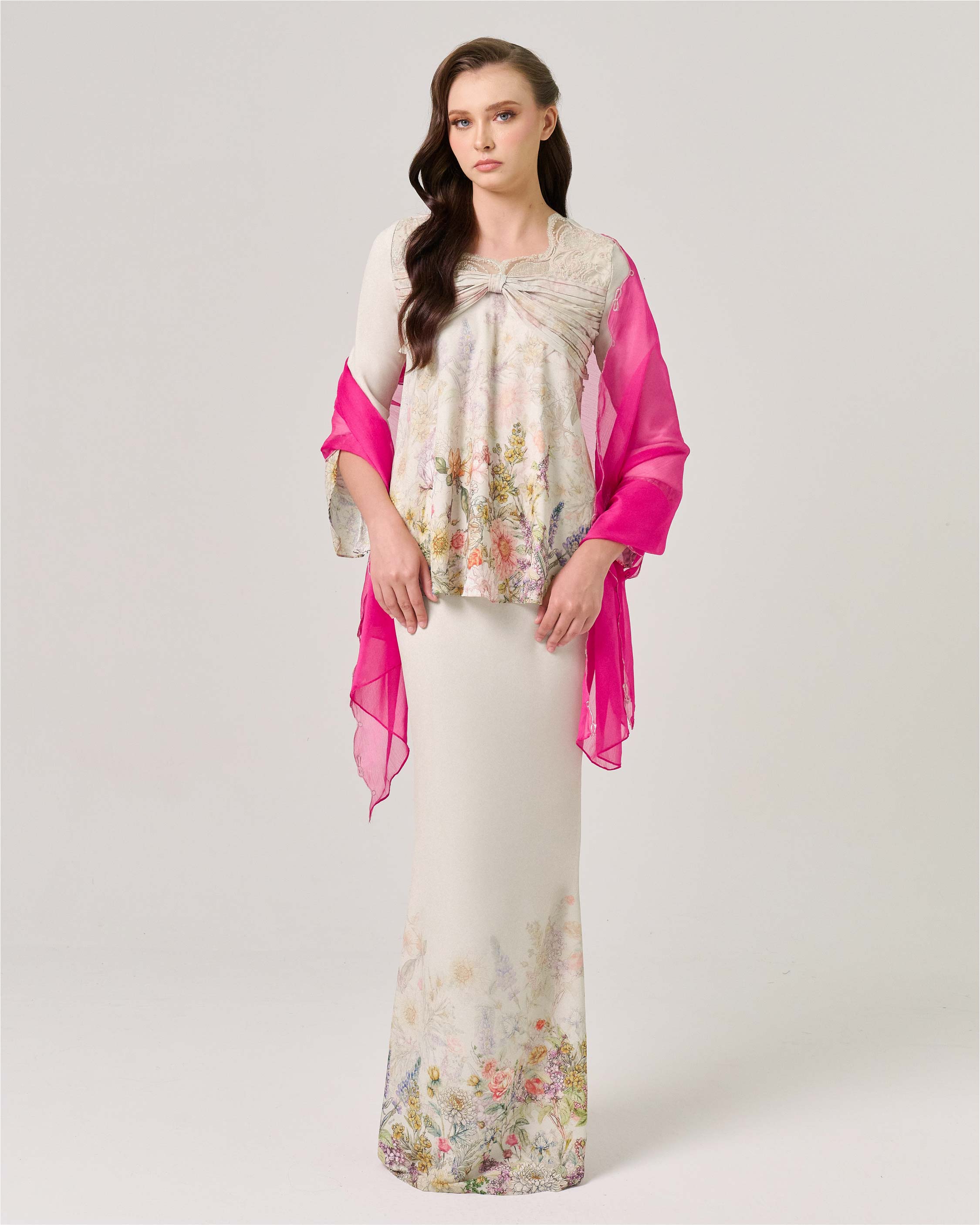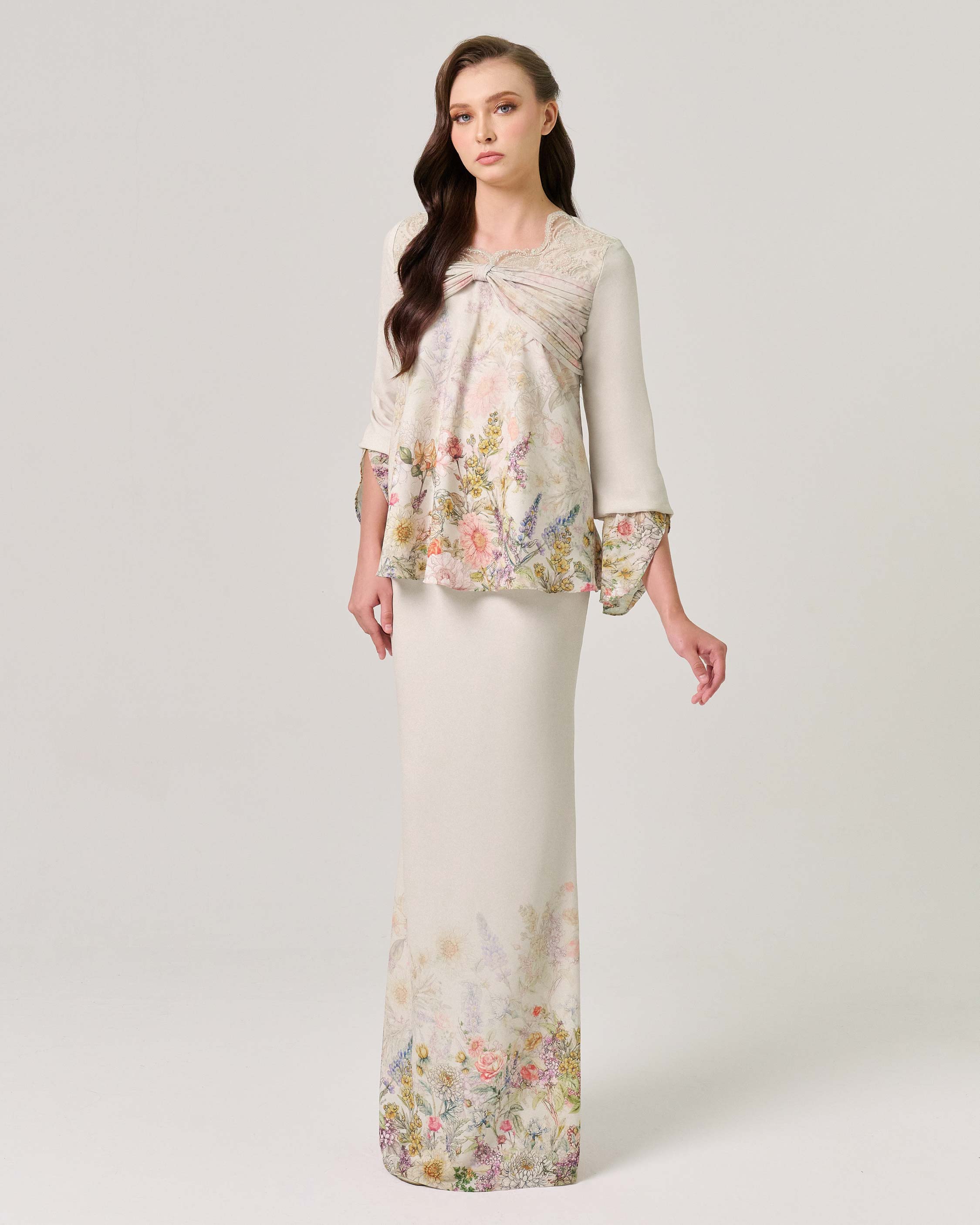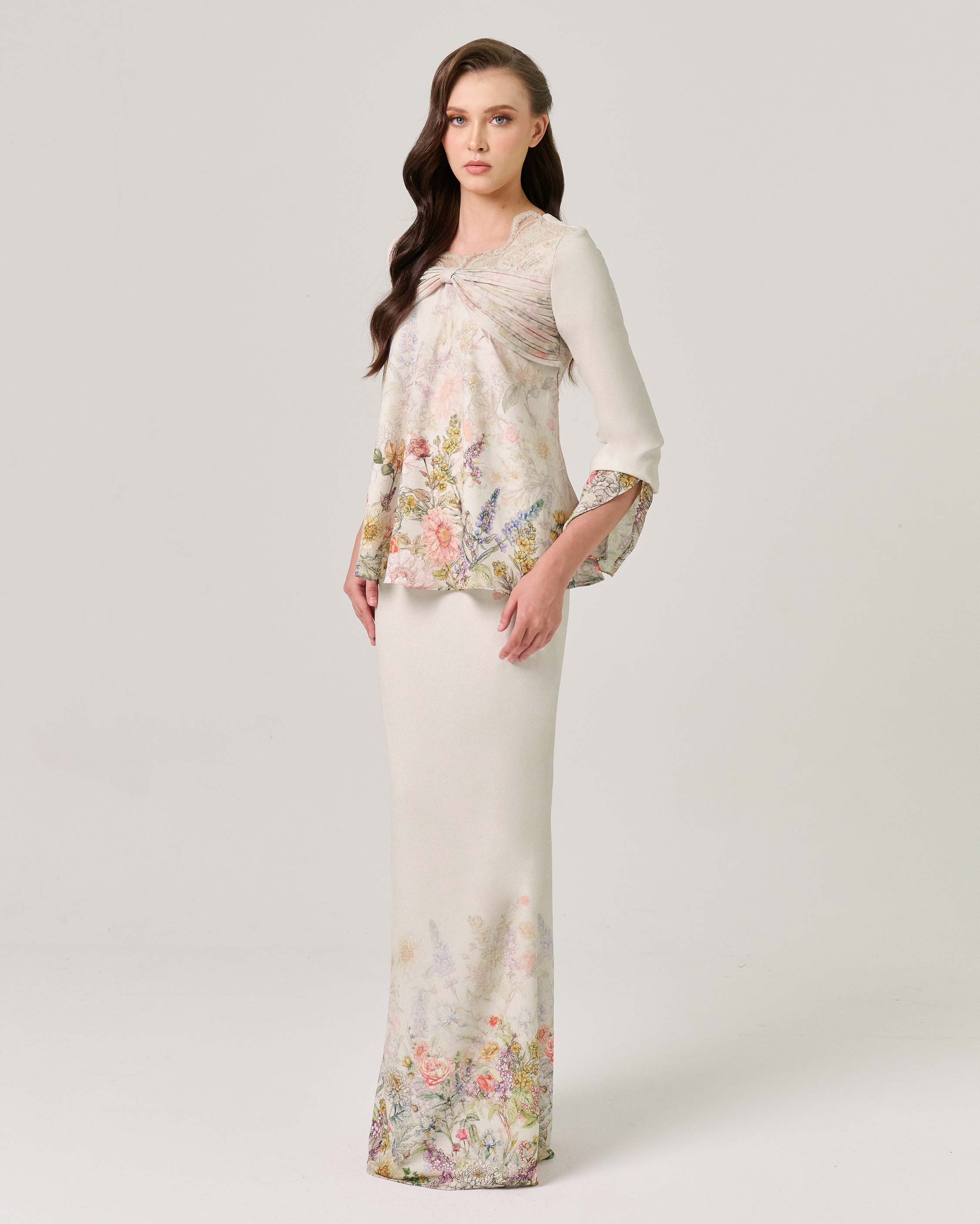 - Exquisite coquette drape on the kurung top