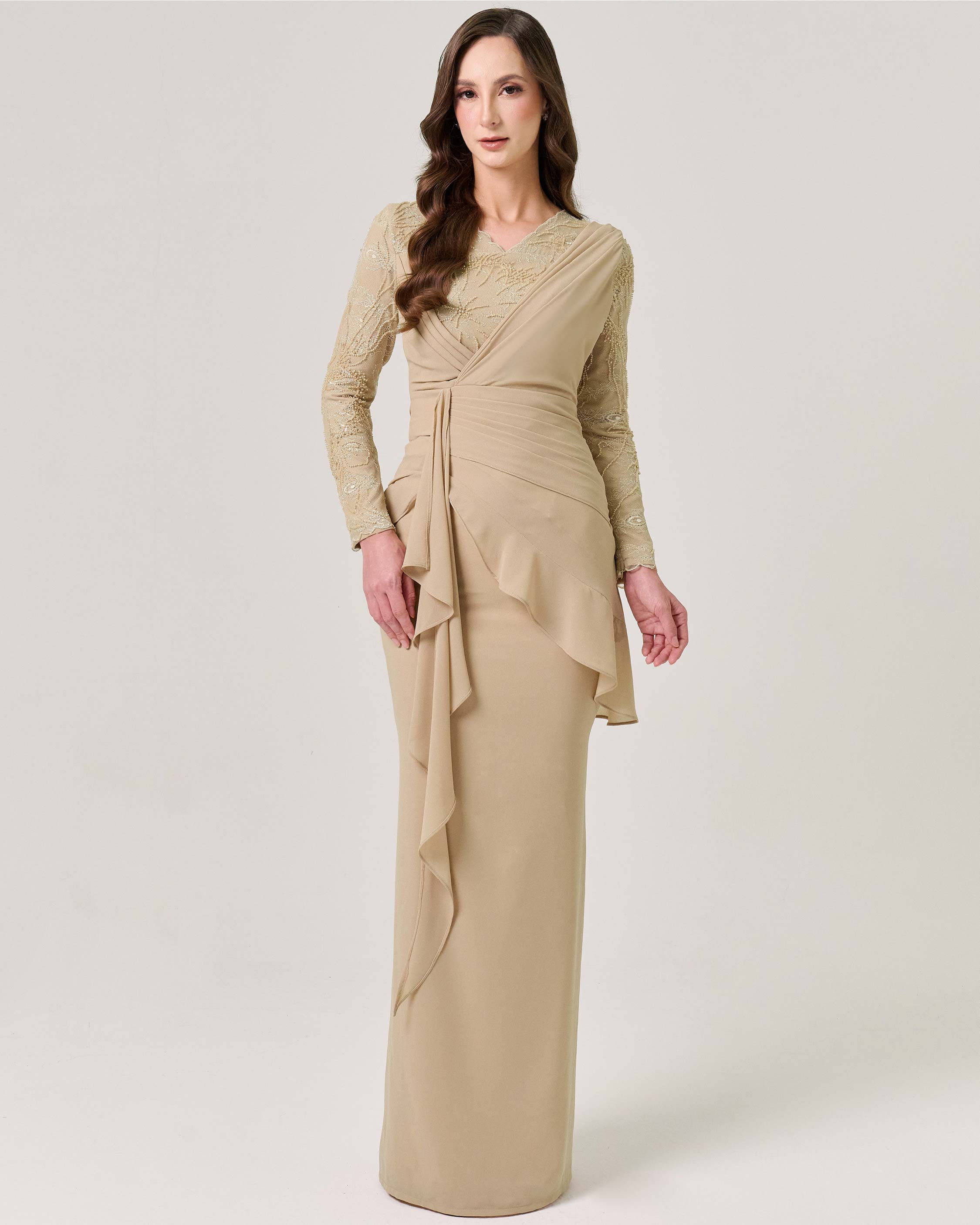 MATERIAL : PREMIUM CHIFFON AND EXCLUSIVE FRENCH BEADED LACE