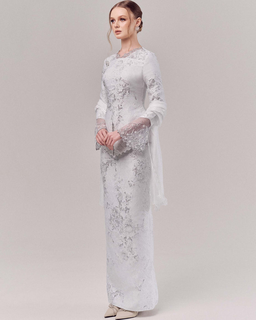 - Fitted sleeve with elegant bottom flare sleeve lace