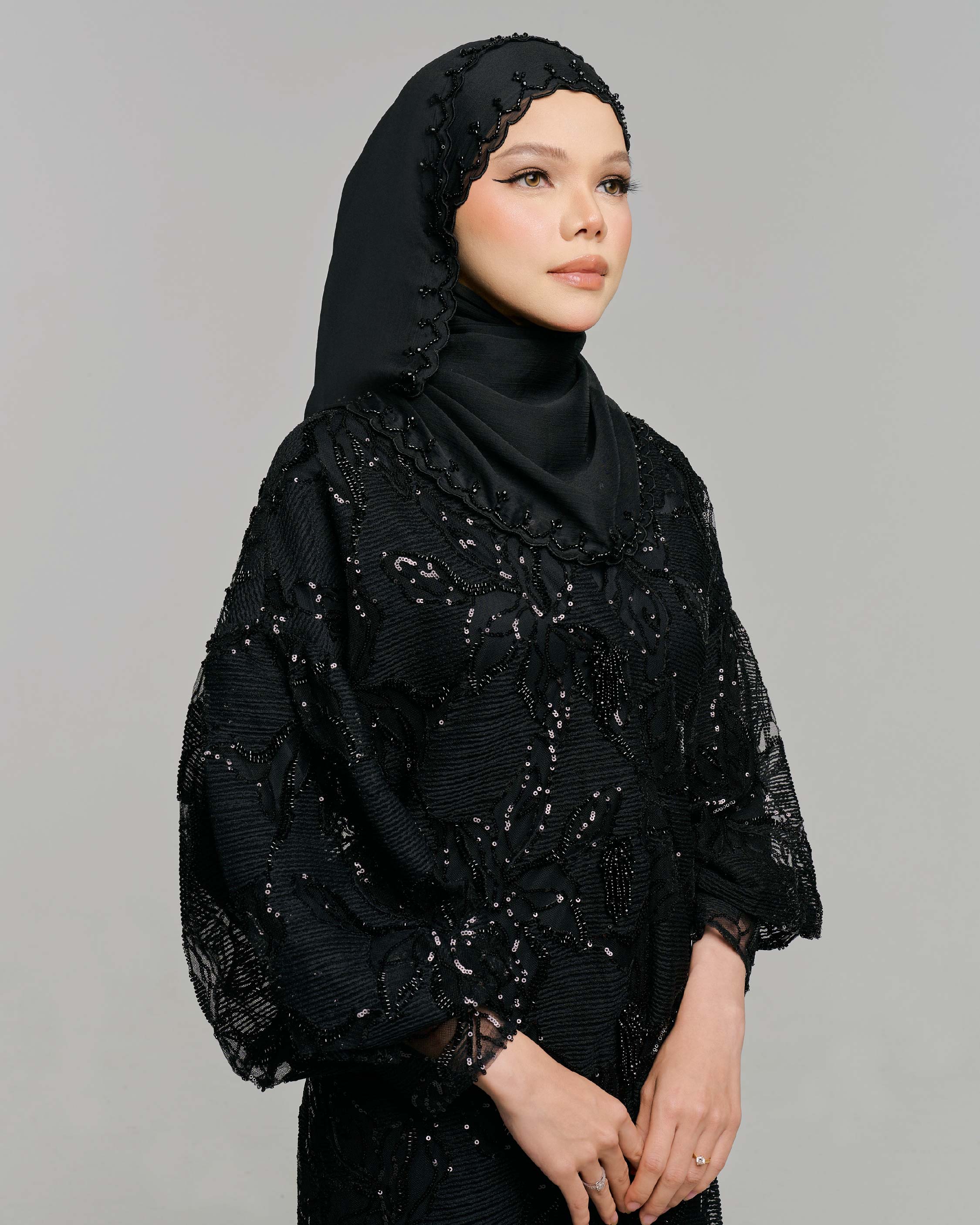 QISZAR EXCLUSIVE BEADED SHAWL - BLACK
