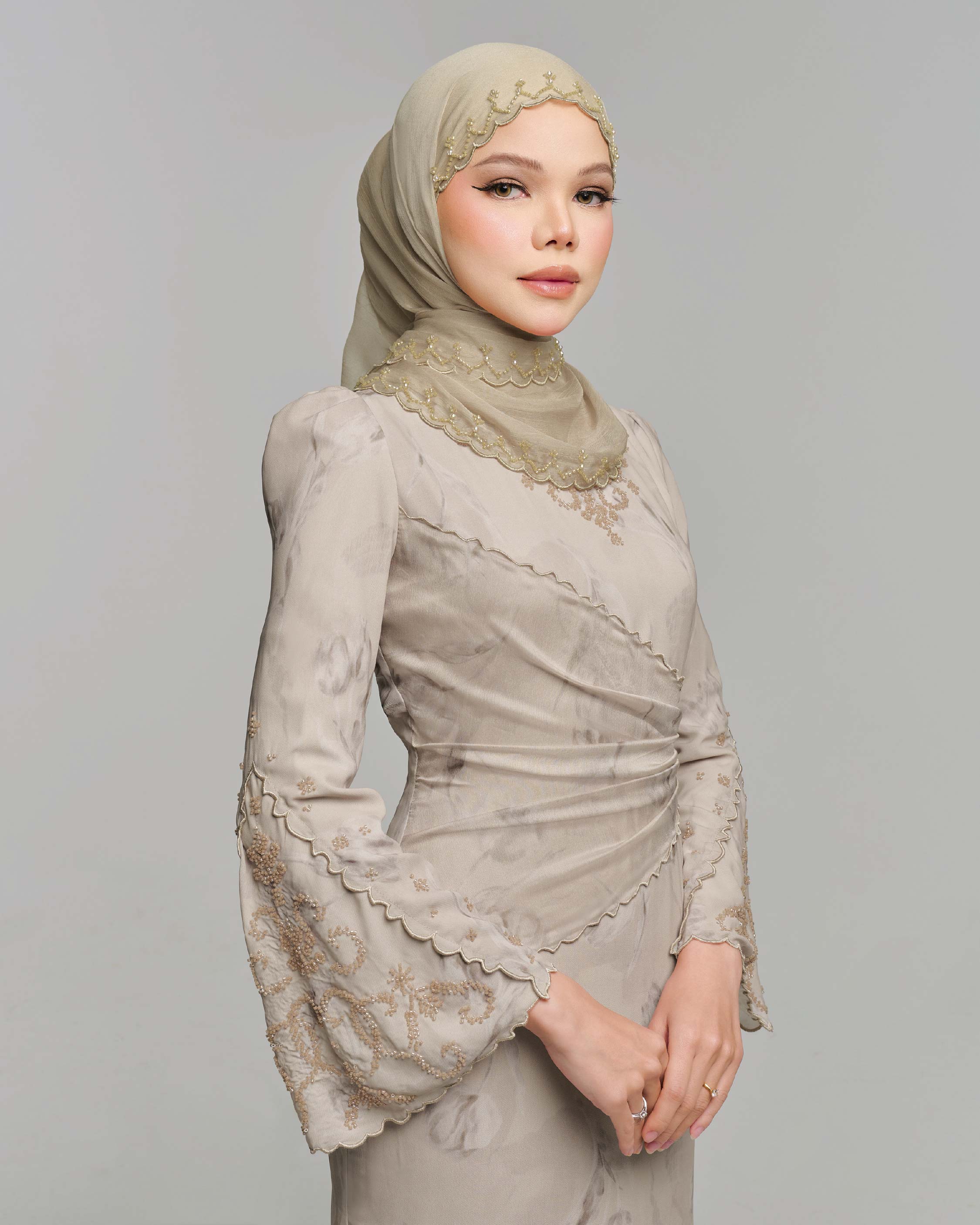 QISZAR EXCLUSIVE BEADED SHAWL - KHAKI