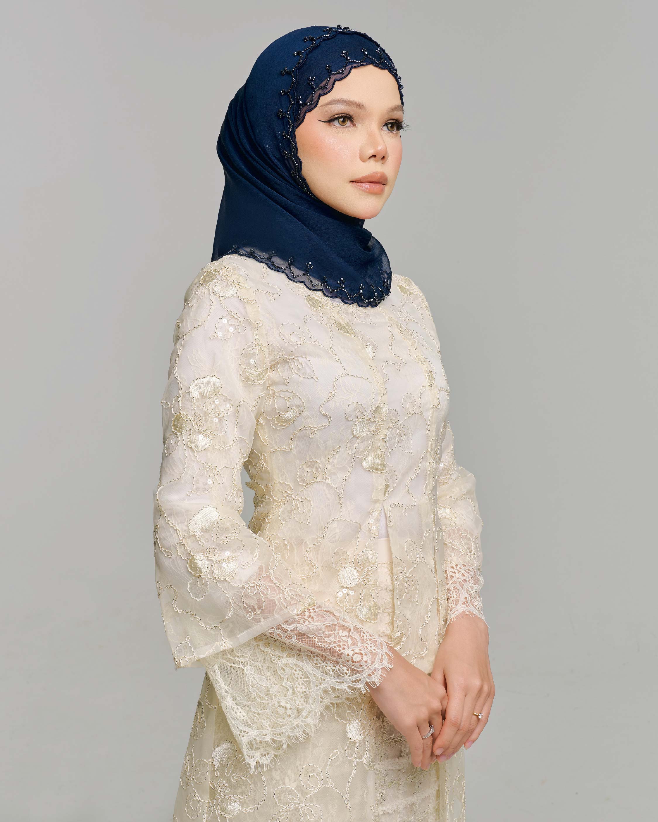 QISZAR EXCLUSIVE BEADED SHAWL - NAVY BLUE