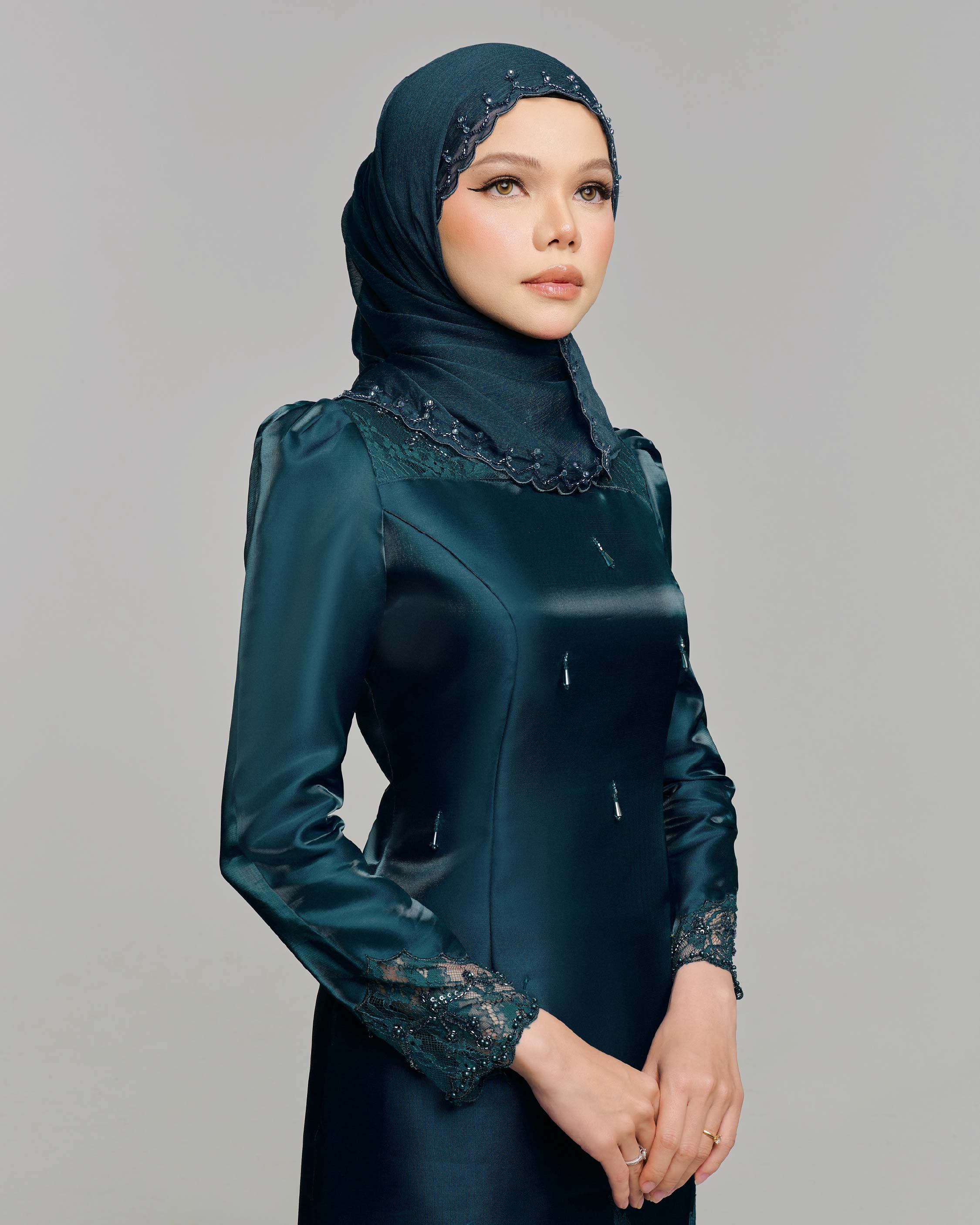 QISZAR EXCLUSIVE BEADED SHAWL - TEAL
