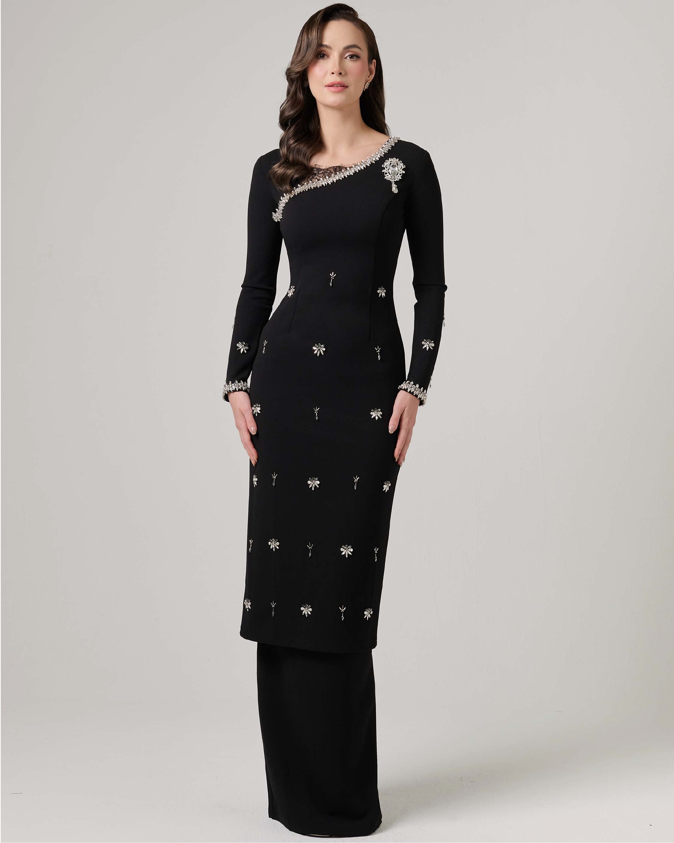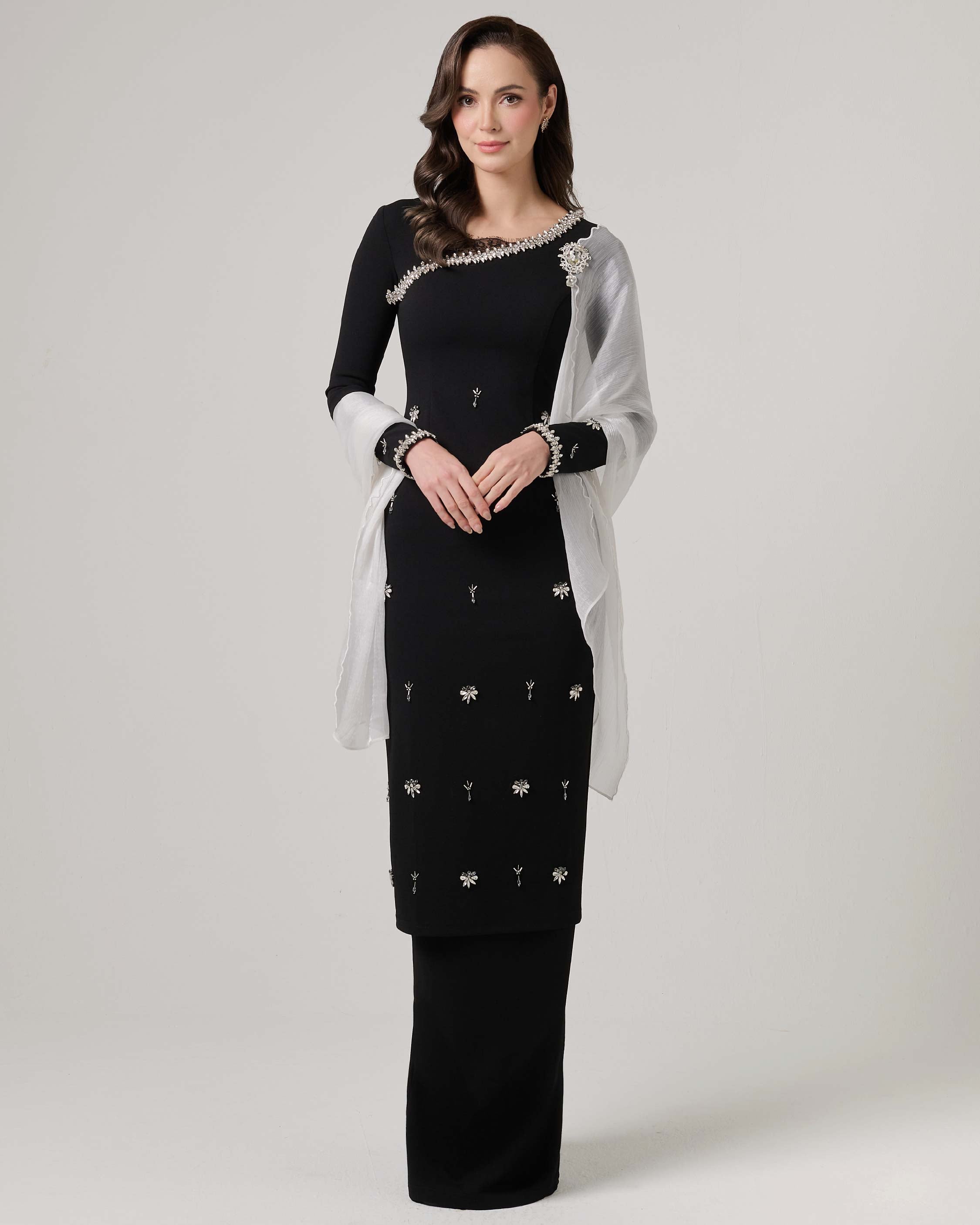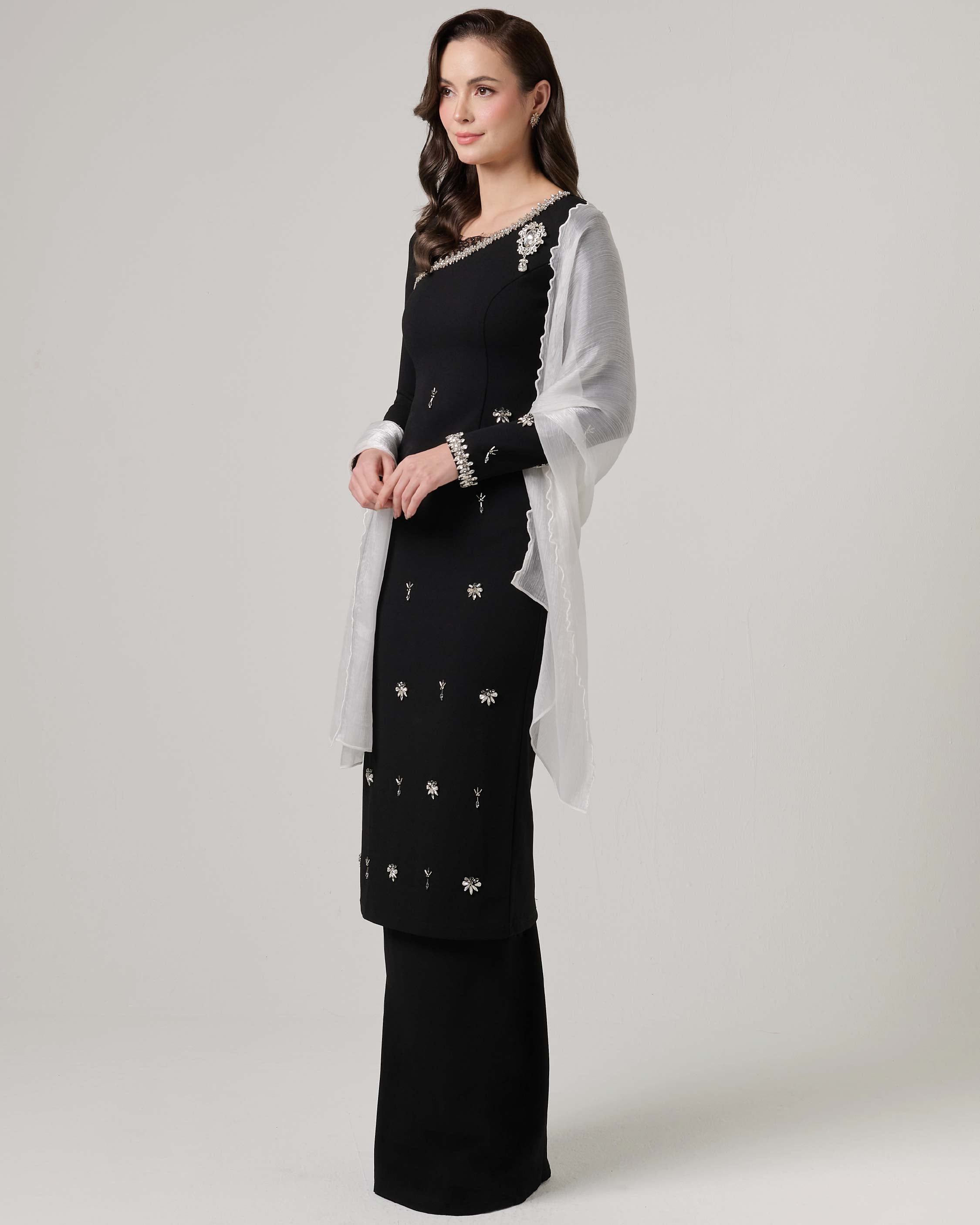 - Long kurung embellished with scattered beads for sparkling effect