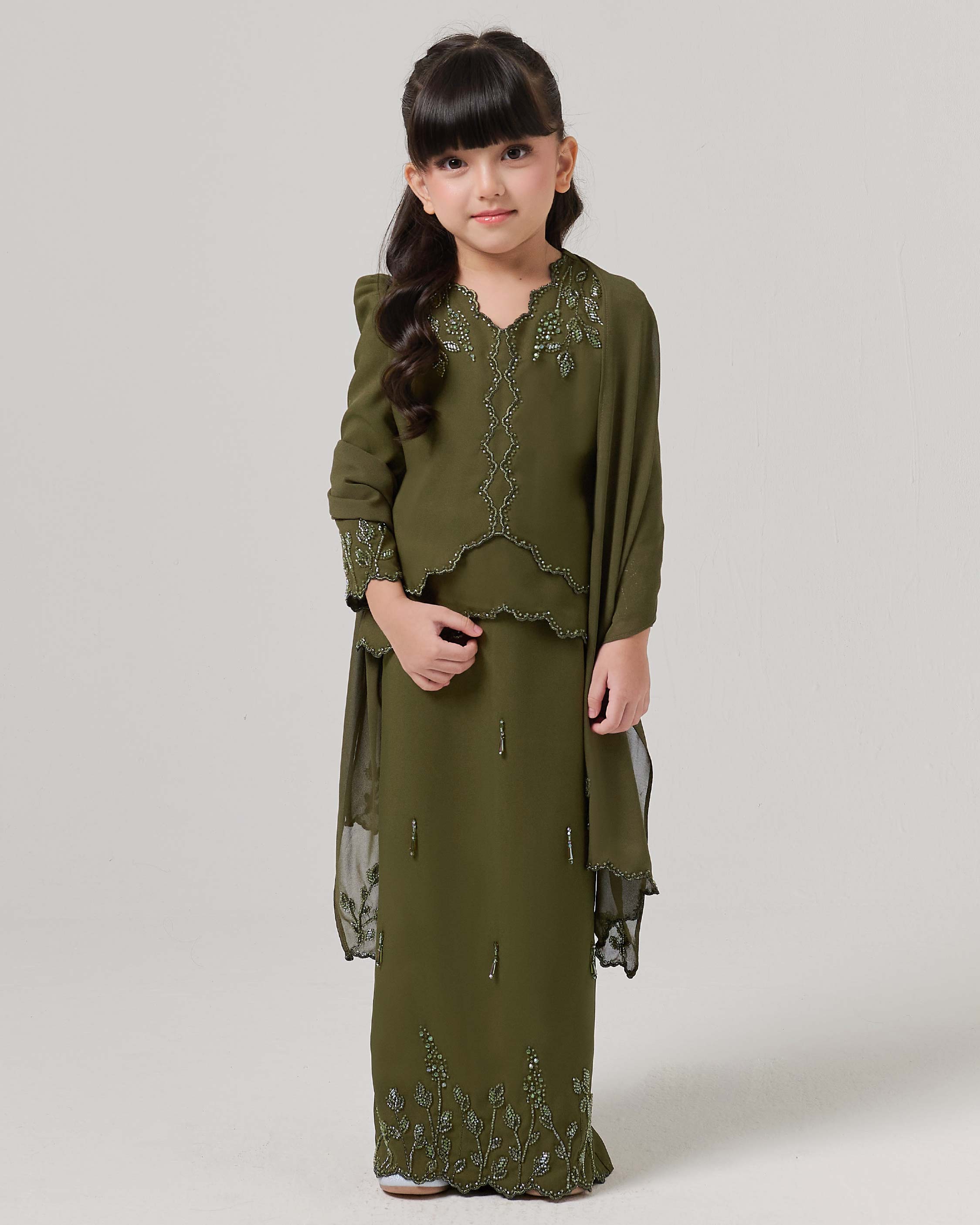 - Scallop with beaded embroidery at center kurung for subtle kebaya look
