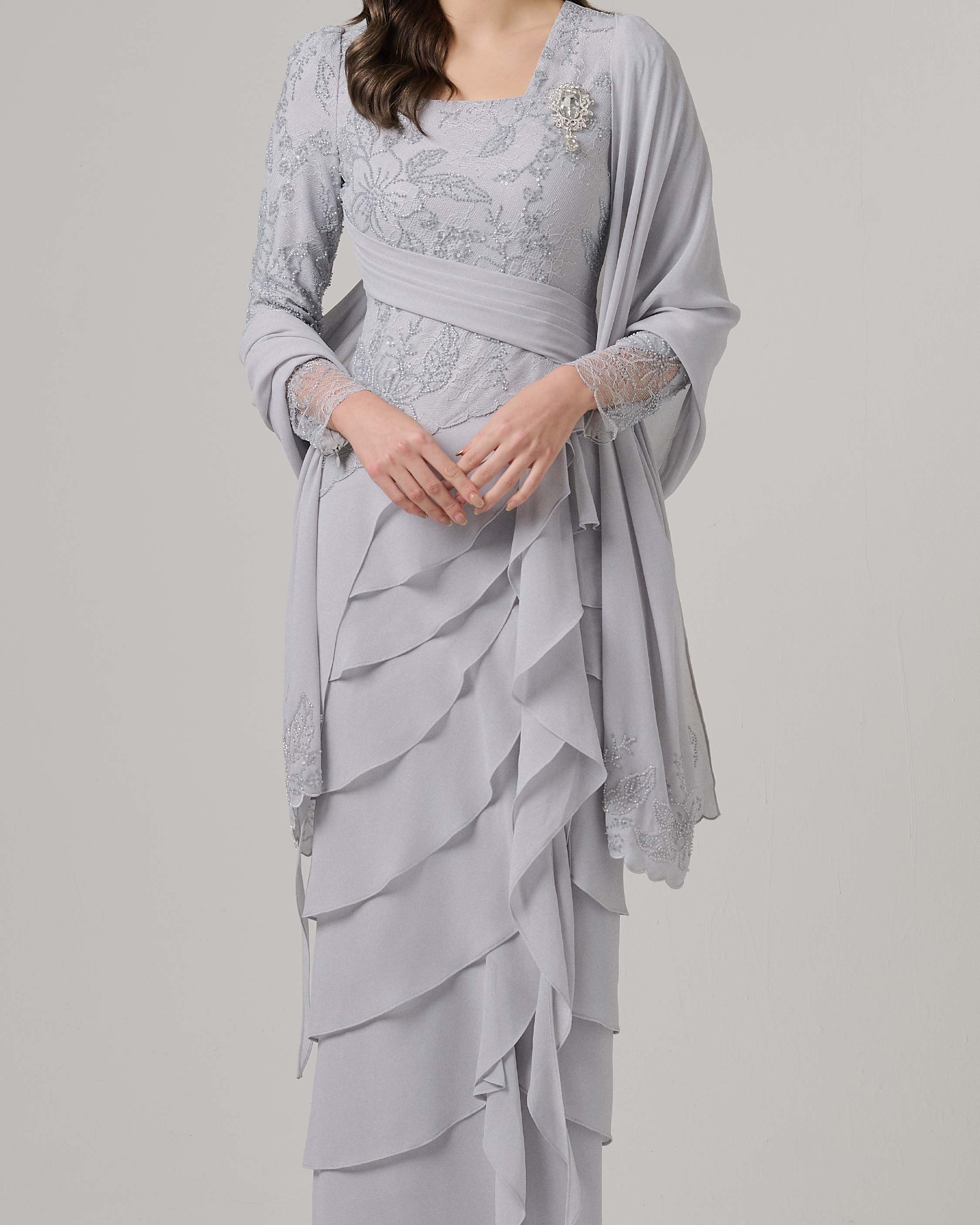 - Comes with beads embroidered chiffon shawl