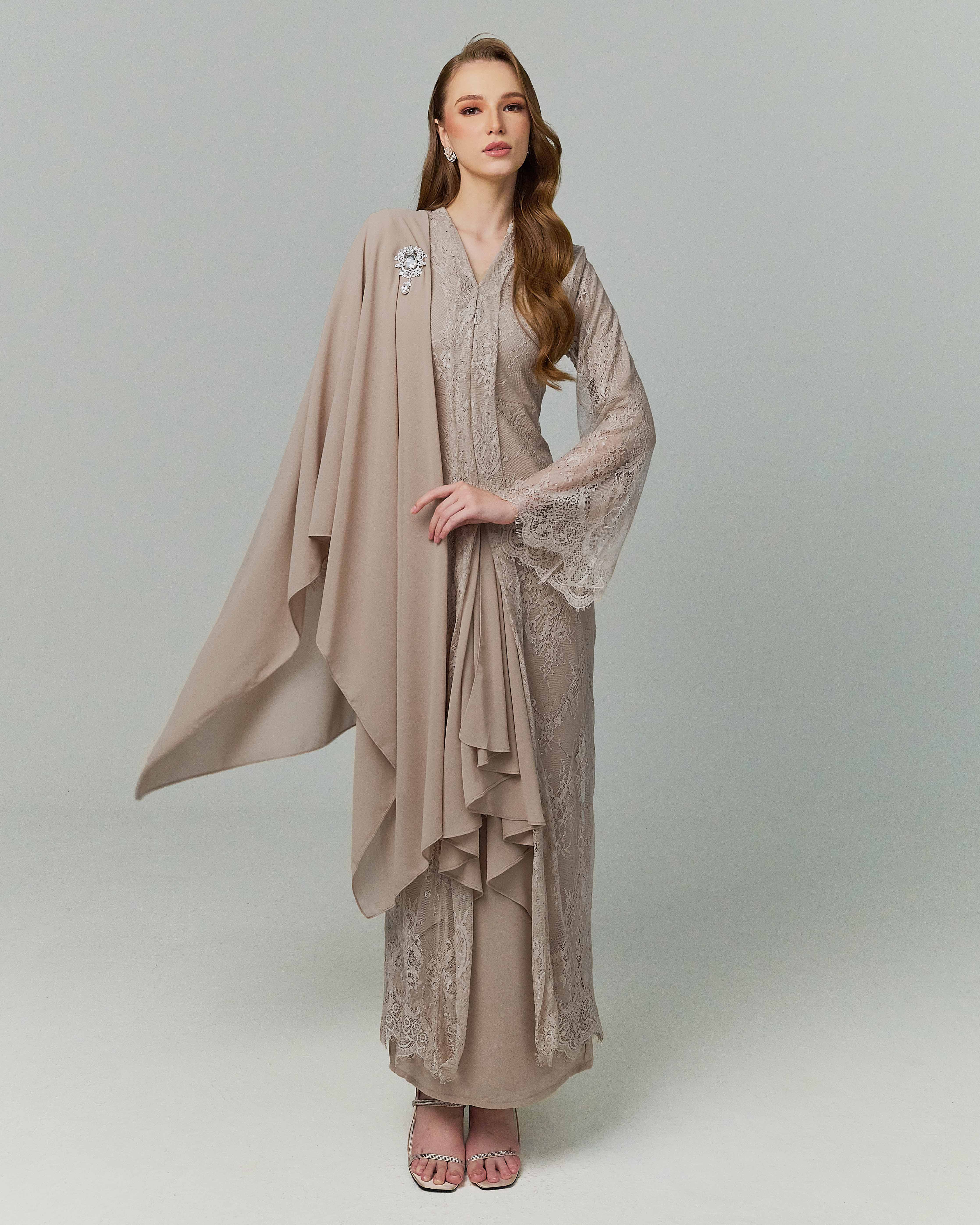 - Long kebaya dress with full french lace for outer topĀ