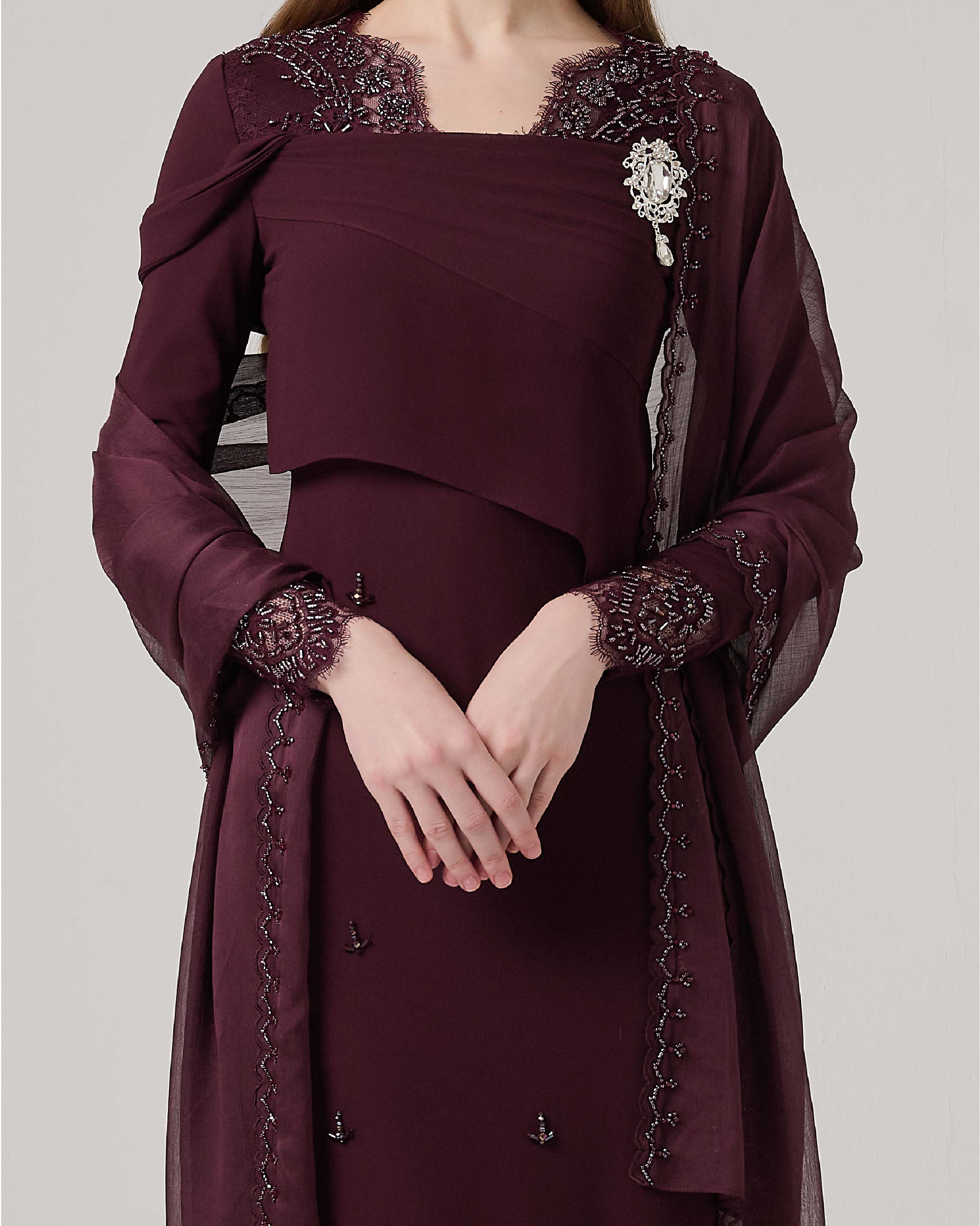 - Comes with embroidered beaded shawl