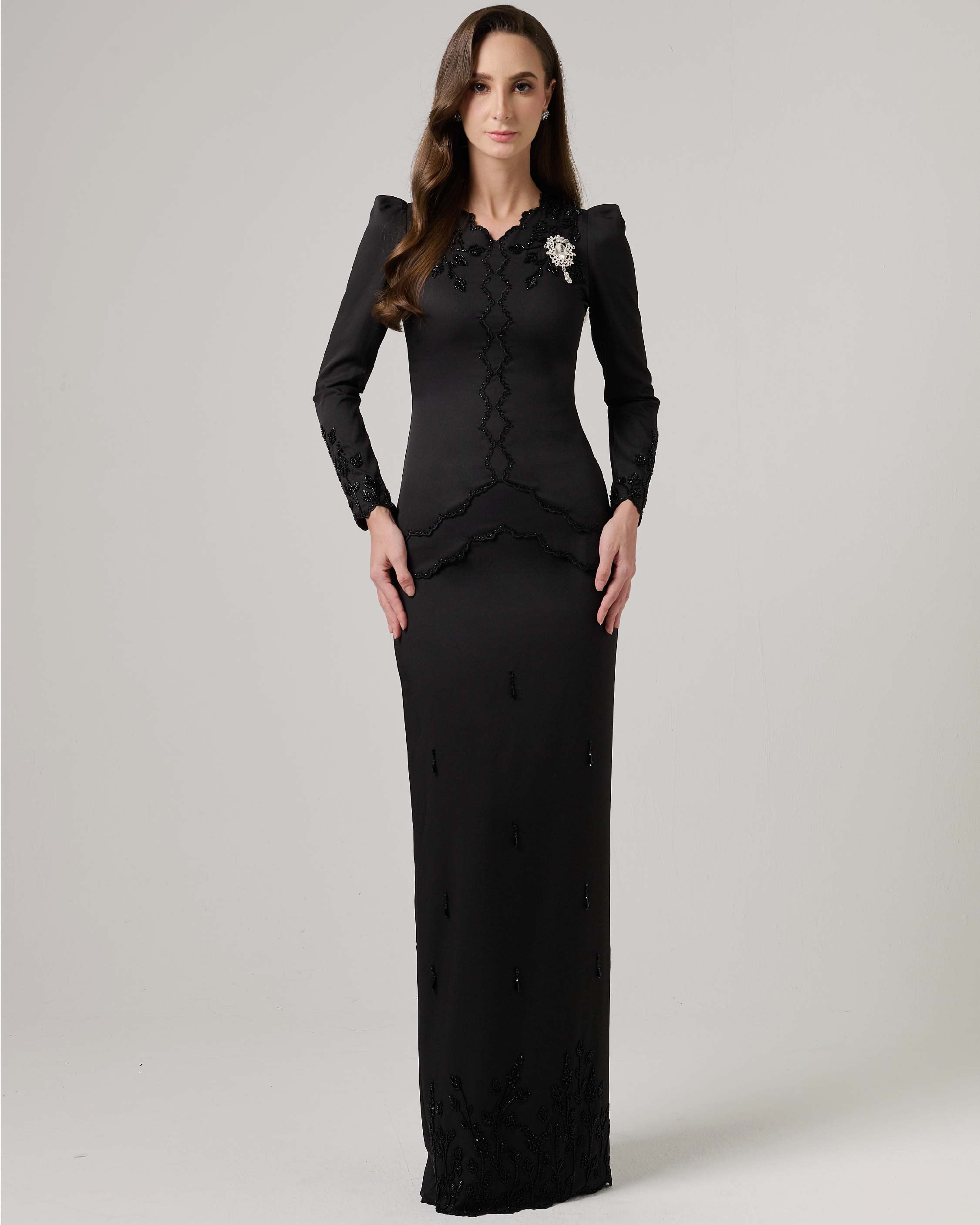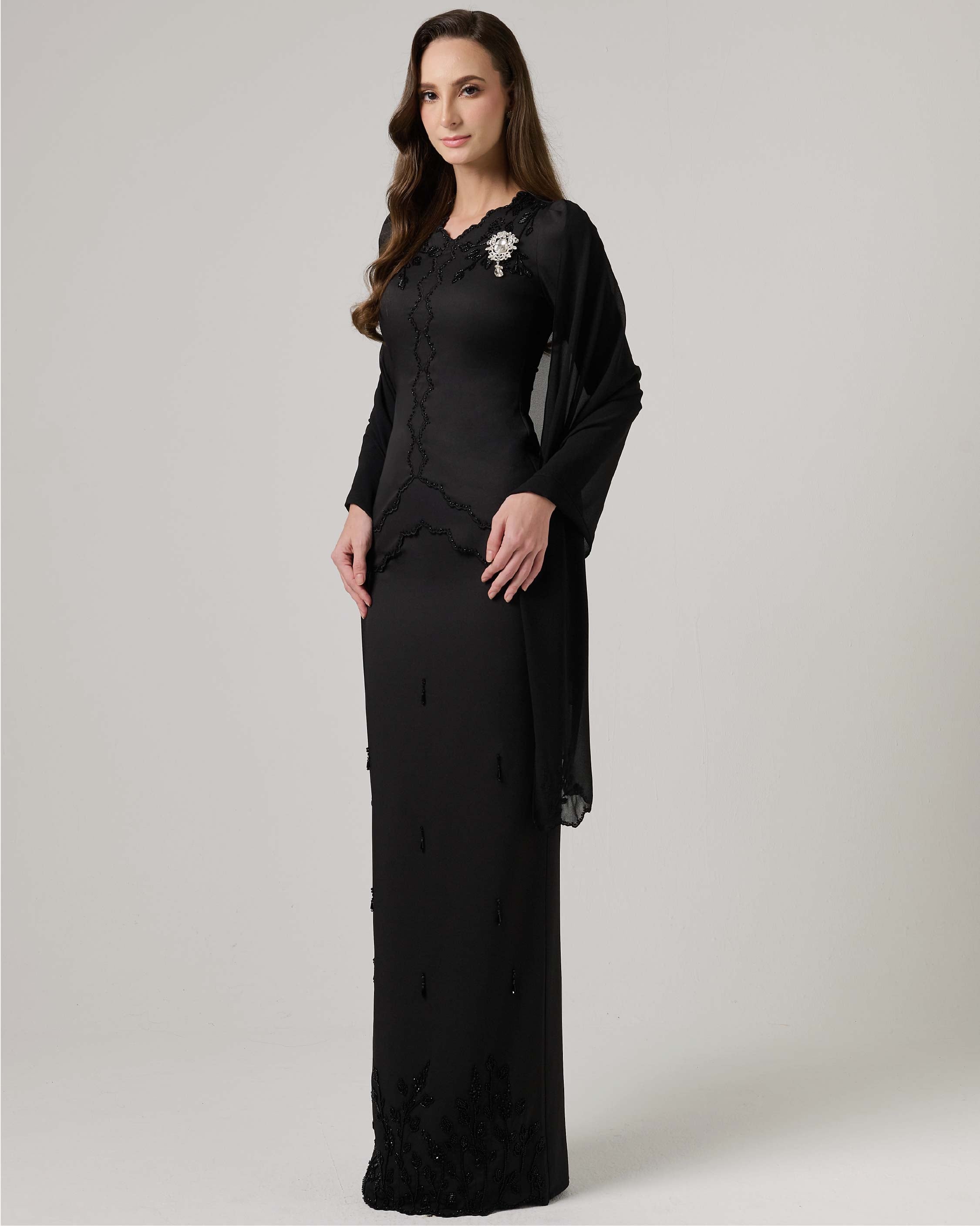 - Scallop with beaded embroidery at center kurung for subtle kebaya look