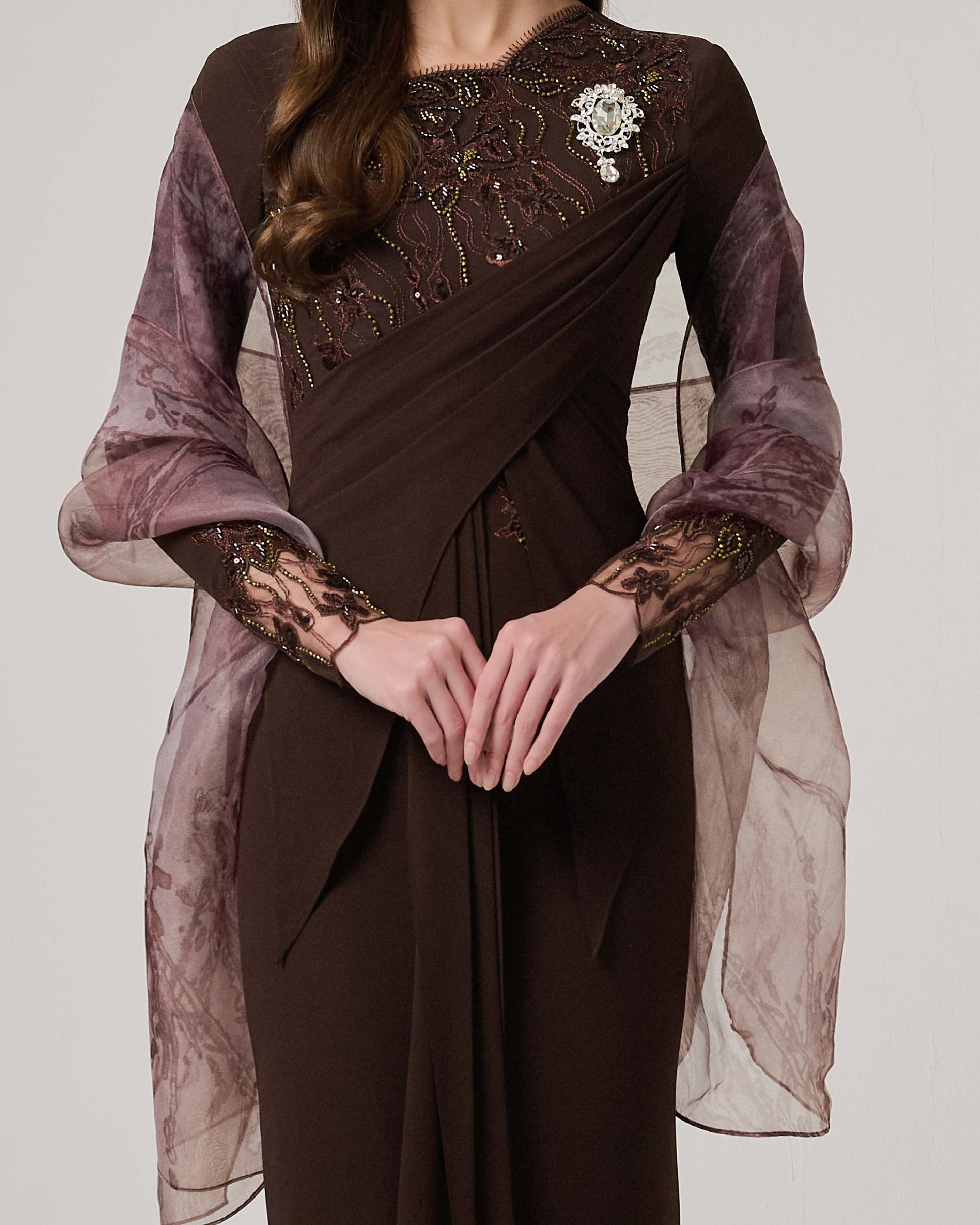 MATERIAL : PREMIUM CHIFFON WITH FULL LINING AND EXCLUSIVE BEADED LACE